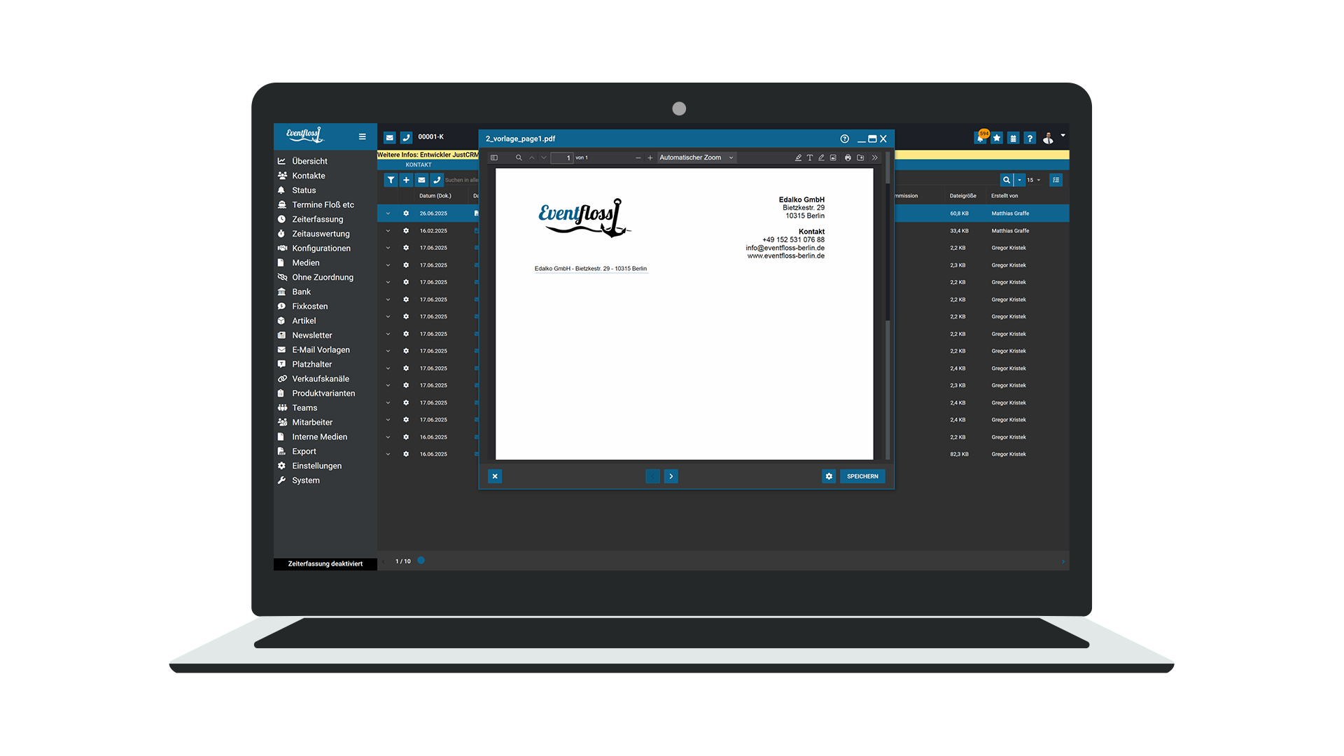 Justcrm wurde zur zentralen Steuerplattform für alle Buchungsprozesse bei Eventfloss – vom Formular über Zusatzleistungen bis zur automatischen Zahlungskontrolle.